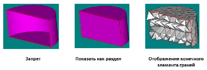 - Показать как грани сетки (Отображение конечного элемента граней) - используется для проверки качества сетки после создания сетки во вкладке Моделирование > Просмотр.