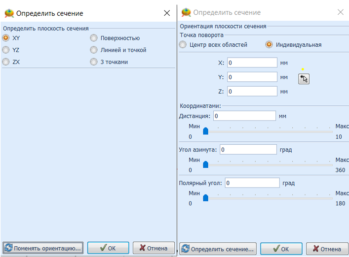 - Функция Определить используется для задания поперечного сечения плоскостью XY, XZ или YZ, поверхностью, линией и точкой/или тремя точками.