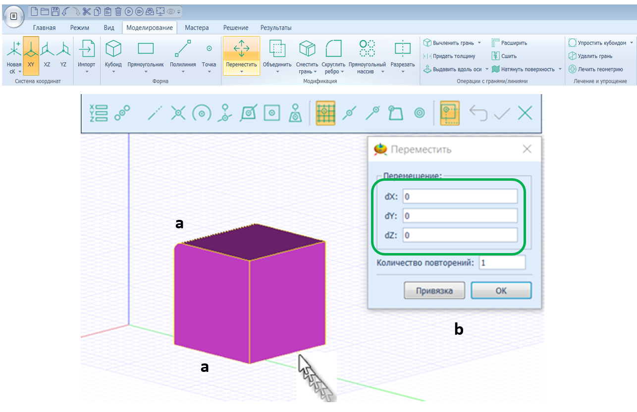 Команда Move (Переместить) перемещает выделенный объект по вектору смещения (а – с привязкой, б – с ручным вводом значения).
