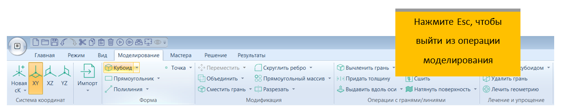 - Выберите значок объекта на Modeling tab (Моделирование).