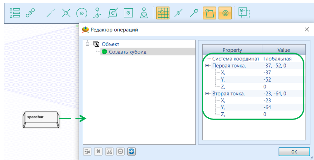 - Нажмите пробел, чтобы получить доступ к Редактору операций, чтобы задать размеры вручную или установить переменные модели.