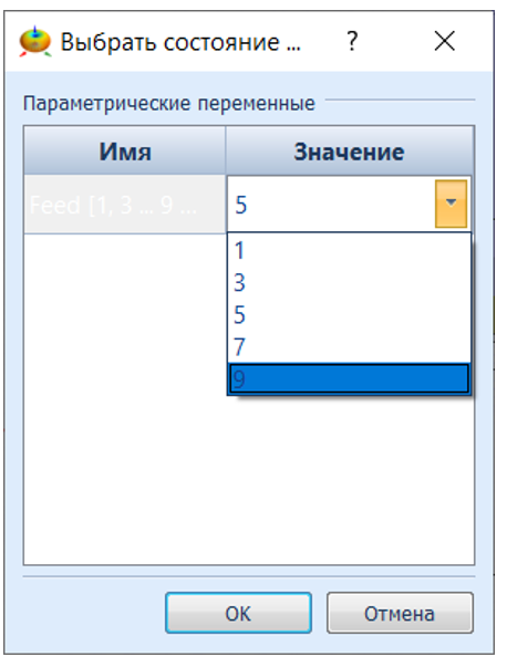 - Дважды Кликните по элементу Value (Значение) в диалоговом окне Select Parametric Analysis State, чтобы выбрать вариант для отображения.