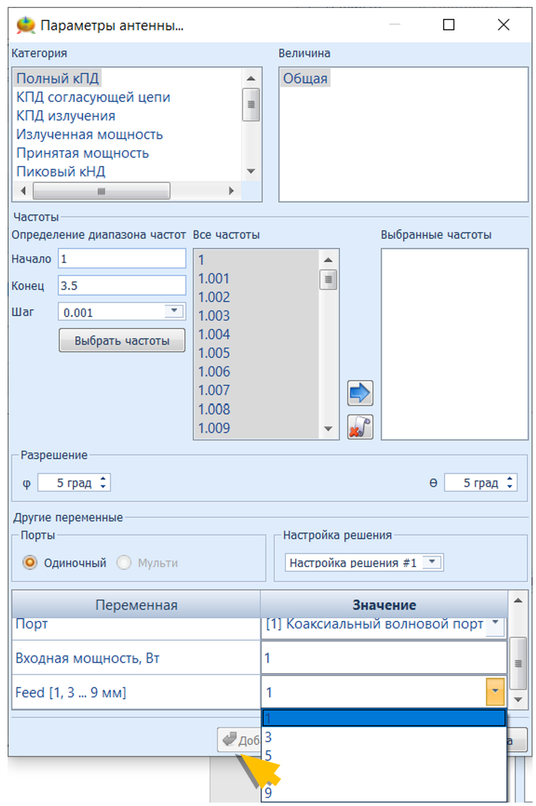Создайте любой параметр результата (Порт, Поле, Излучение) на основе предопределенной переменной: