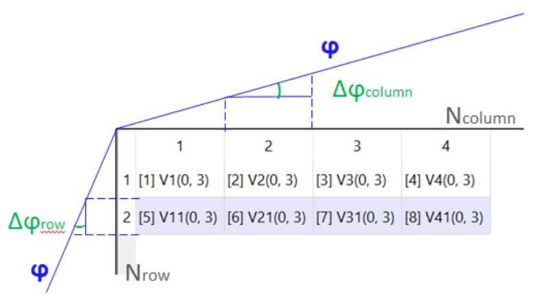 Различие между фазами соседних портов в таблице Define Antenna Array (Определить антенную решетку)