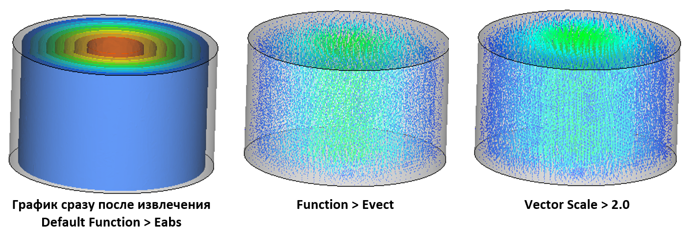 - Eabs - Абсолютное значение электрического поля |E|(x,y,z). Не может быть анимировано.