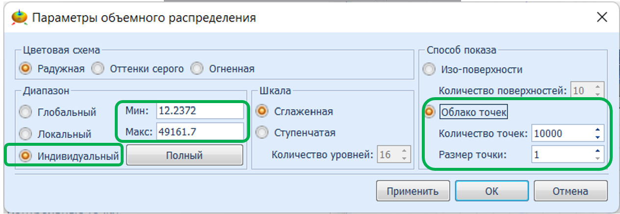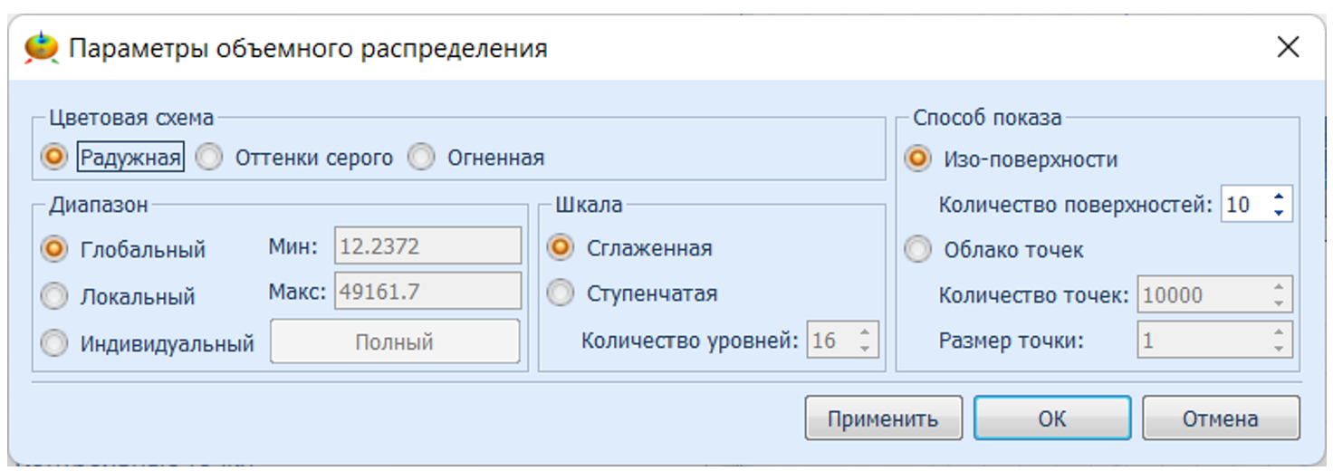- Global (Глобальный) - автоматически выбирает диапазон цветов/длин визуализации.