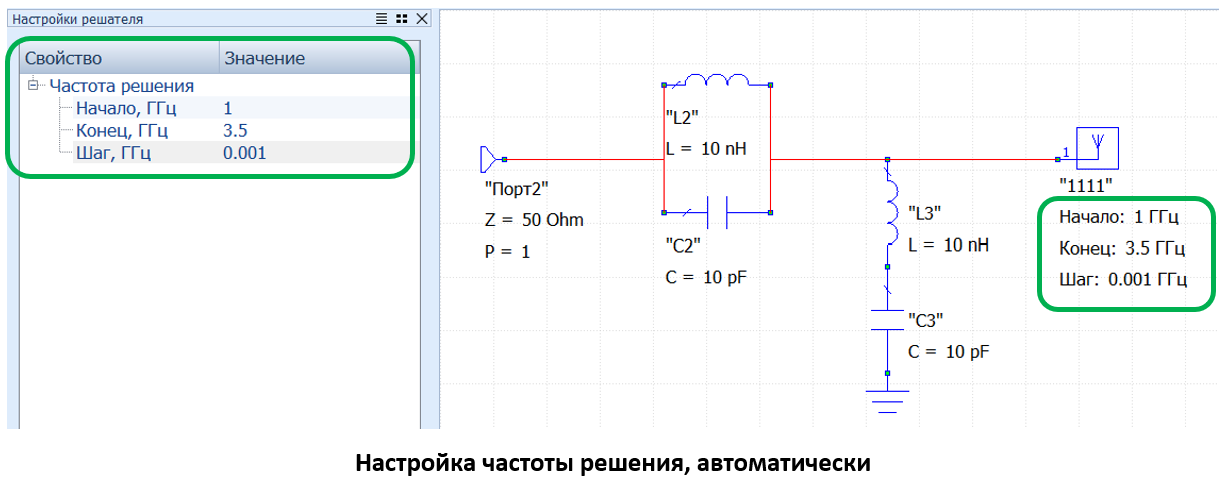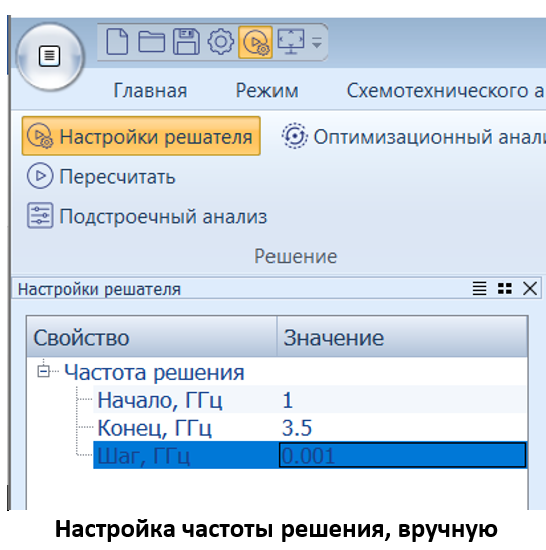 2A. Если цепь содержит SNP-элемент, значения частоты решения будут скорректированы автоматически. При необходимости можно изменить значения вручную.
