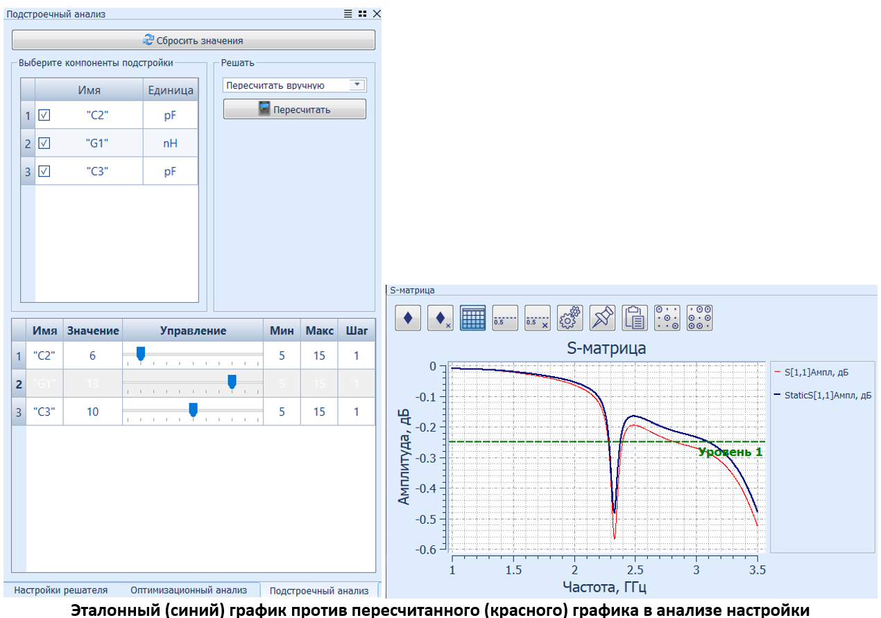 Вы можете создавать статичные копии всех кривых S-параметров. Эта функция полезна для возможности Отладки и Оптимизации, когда статичная копия отображается в качестве образца для расчета цепи.