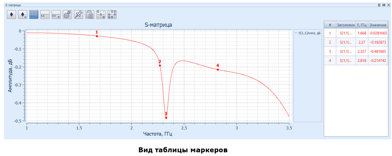 , чтобы просмотреть данные о маркерах. Сделайте двойной клик по ячейке Freq. HGz, чтобы получить доступ к элементам управления вверх/вниз для более точного позиционирования.