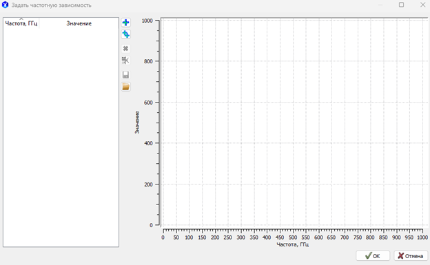 После чего кнопкой открыть диалоговое окно «Задать частотную зависимость»: