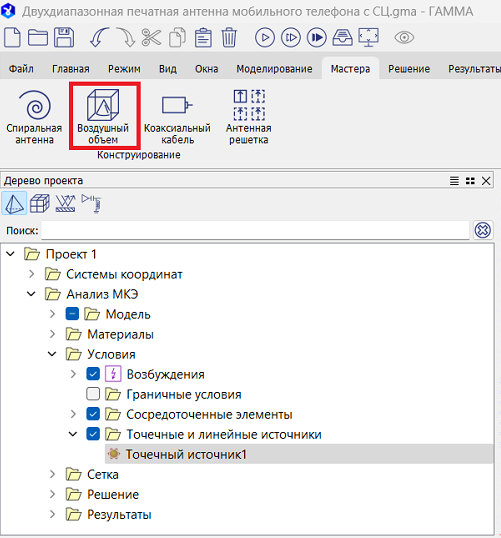 - На вкладке Мастера нажмите кнопку Воздушный объем.