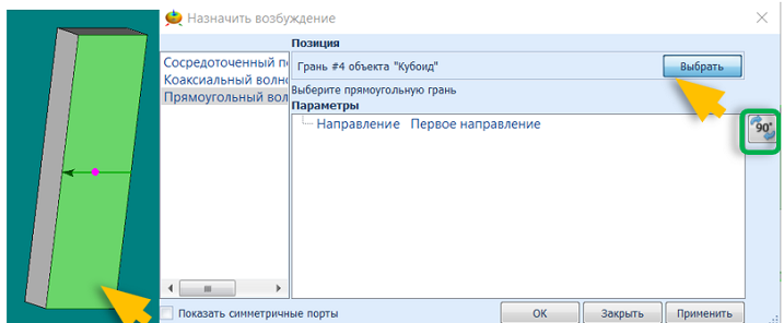 В диалоговом окне Определить намагничивание выберите Прямоугольный волновой порт.