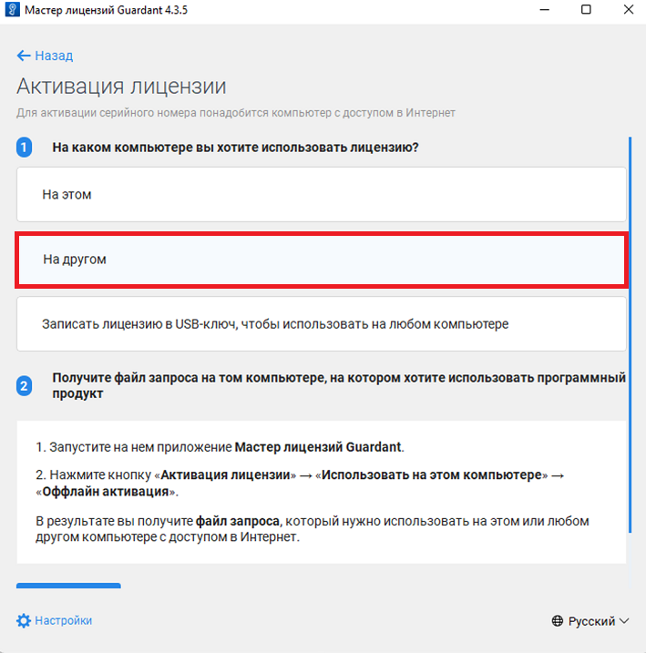 Чтобы перенести лицензию программы на компьютер без доступа к сети Интернет, выполните следующие действия: