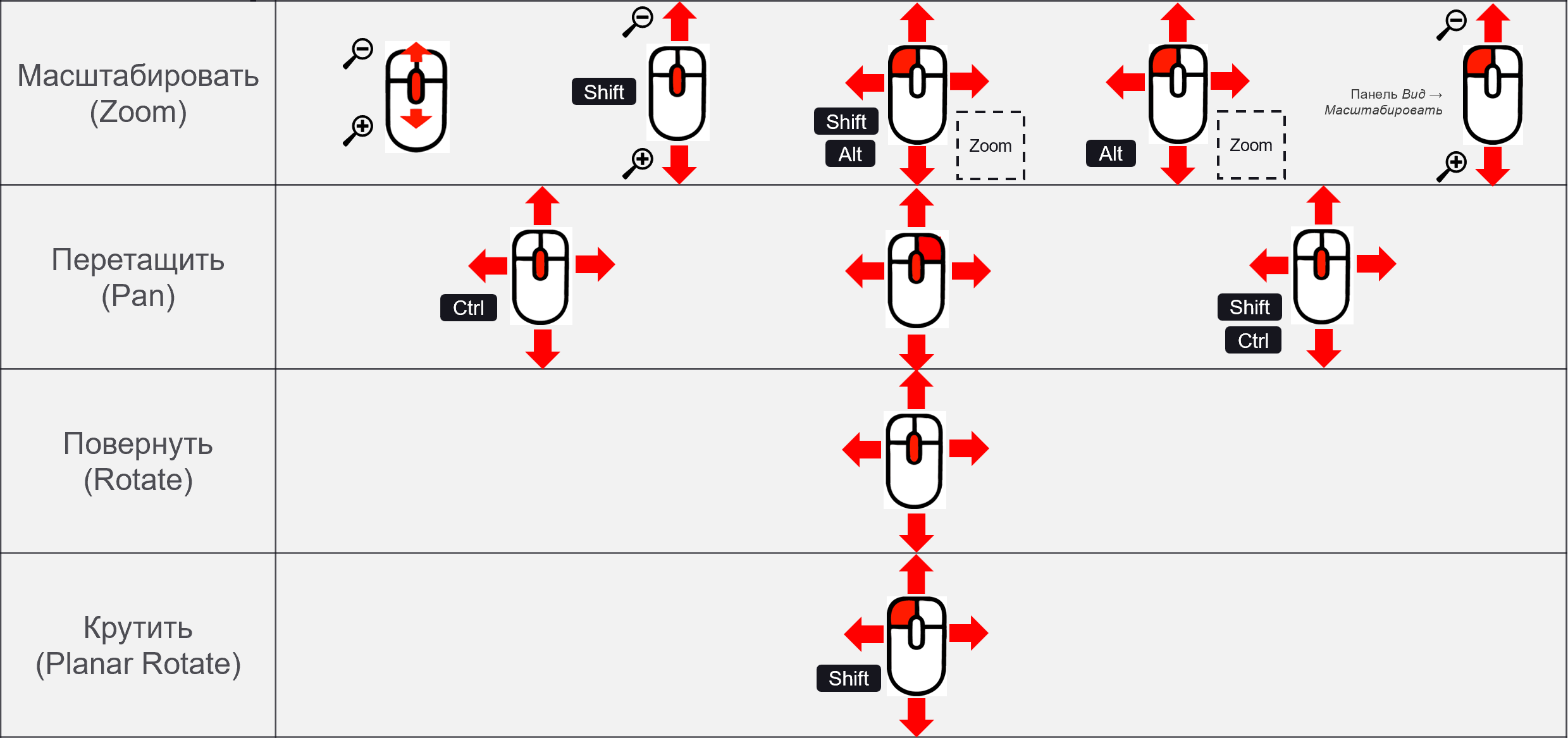 Чтобы управлять видом модели с помощью мыши и клавиатуры, в меню