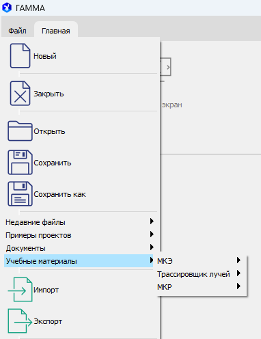 Учебные материалы также можно найти на жестком диске в каталоге установки программы (по умолчанию: C:\Program Files\GammaTech\Gamma\Files\Tutorials).