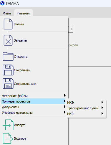 Примеры проектов также можно найти на жестком диске в каталоге установки программы (по умолчанию: C:\Program Files\GammaTech\Gamma\Files\Examples).