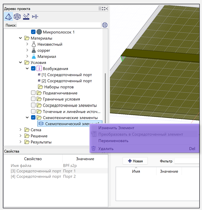 В папке Условия – Схемотехнические элементы будет создан схемотехнический элемент.